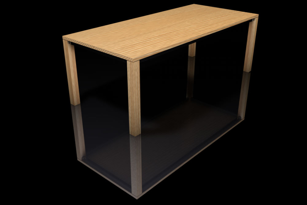 Dieser schlichte Tisch ist sowohl in verschiedenen Massivhölzern als auch in diversen Metallsorten für die Traversen erhältlich.