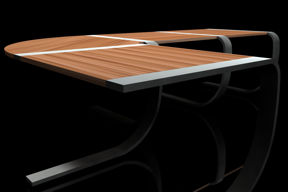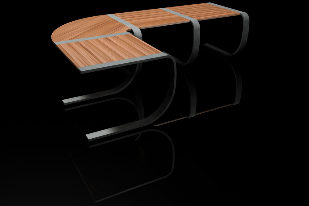 Für die Tischplatte stehen verschiedene Holzarten zur Verfügung. Es können beliebig viele Module aneinandergefügt werden.