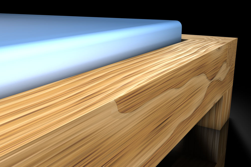 Die Traversen bestehen aus massiven Stämmen, welche auf die Stein- oder Aluminiumpfosten gesteckt werden. Die Stämme arbeiten wie jedes Holzteil, so dass mit der Zeit Risse entstehen. Dadurch wird Ihr Schlafzimmer zu einer im wahrsten Sinne des Wortes einzigartigen Schlafstätte.