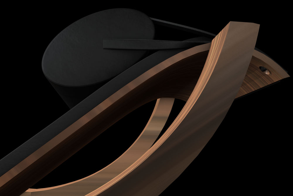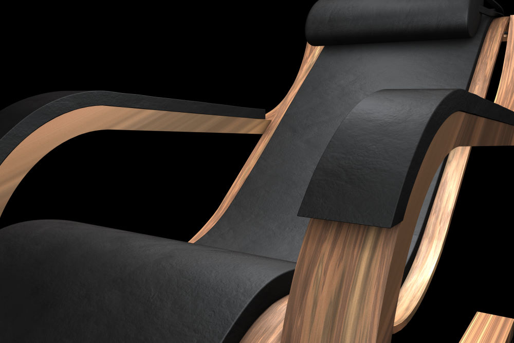 Speziell an diesem Sessel ist die Ausführung als Freihänger. Er wird in Holz, Stahl und Leder ausgeführt und das Kissen ist in der Höhe verstellbar.